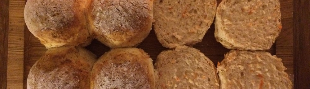 Ett härligt matigt morotsbröd. Jag har ”fuskat” lite och införskaffat en rejäl baksten (5 cm tjock granit…) Detta gör bröden alldeles extra puffiga och fina, men liknande resultat kan uppnås på varma plåtar.