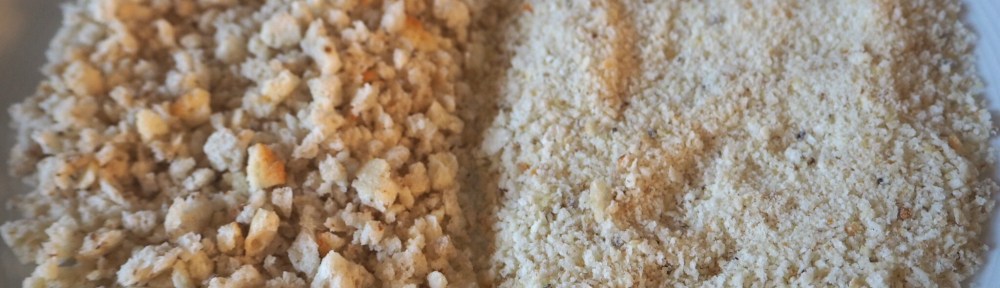 Världen enklaste tips! Kanske självklart för vissa, men det är inte säkert att man tänker på det. Har du bröd som blivit tråkigt och torrt (tyvärr blir det ju ofta så med glutenfritt bröd redan när det varit framme ett par dar), skär av skalkarna om de är alltför torra och sega och placera brödet i matberedare. Kör antingen bara en kort stund om du vill ha grovt ströbröd (t.ex till panering, typ panko), eller längre om du vill ha ströbröd att bröa bakformar med. Strö ut brödet på tallrikar och låt torka några dagar på varmt ställe. Lägg inte för tjockt lager på varje tallrik och rör gärna runt i smulorna ibland så att det inte samlas fukt i botten. På 2-3 dagar har du finfint ströbröd! Glutenfritt ströbröd kan annars vara ganska dyrt, och ibland svårt att få tag på. Vissa butiker säljer bara ströbröd gjort på majs, vilket jag tycker ger helt andra egenskaper. På det här sättet slipper du slänga gammalt bröd som du i ditt anletes svett bakat av dyra mjöler, och dessutom köpa dyrt ströbröd. Win-win